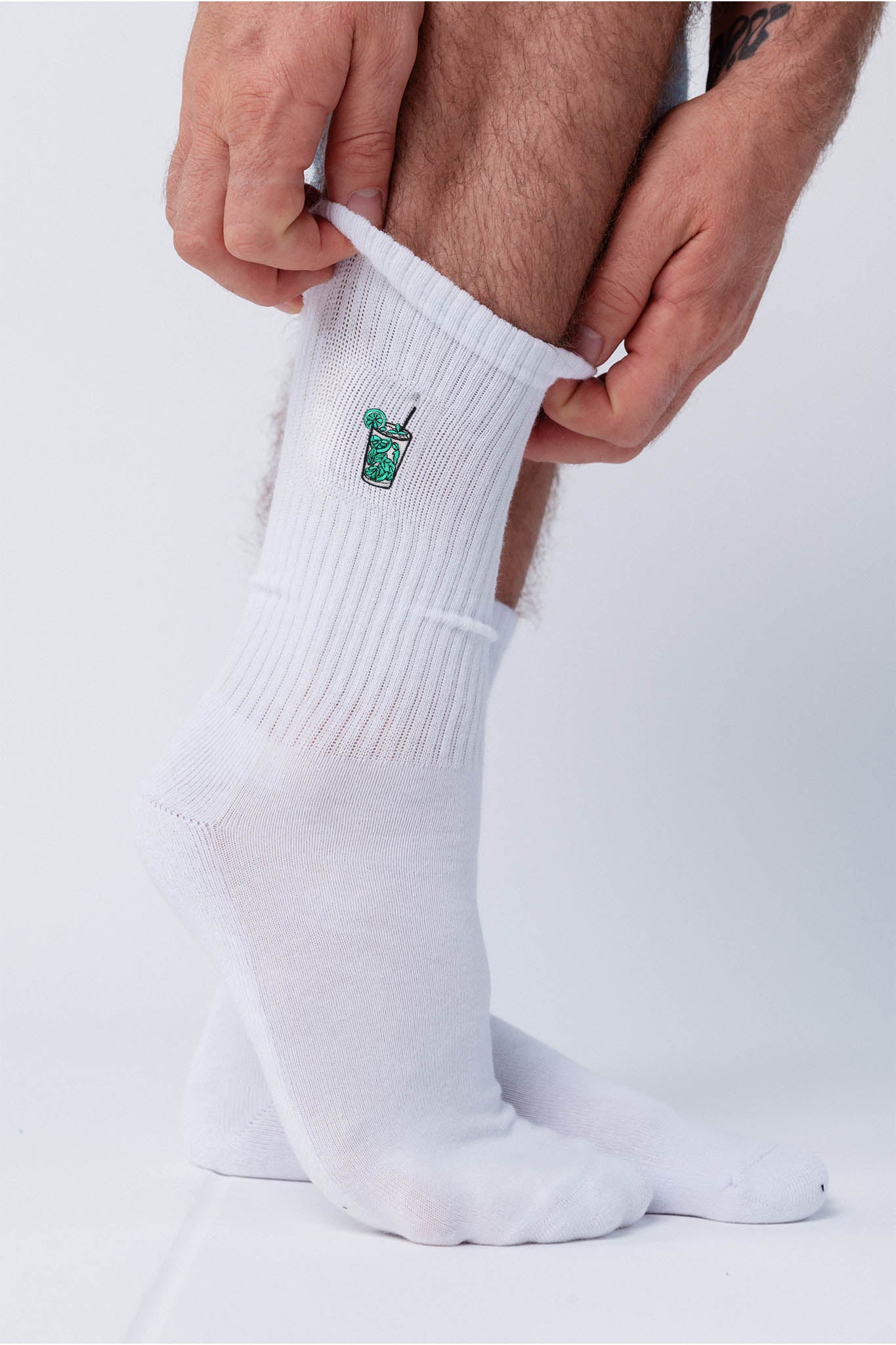 Super hoogwaardige crew sokken van biologisch katoen met geborduurd mojito dessin