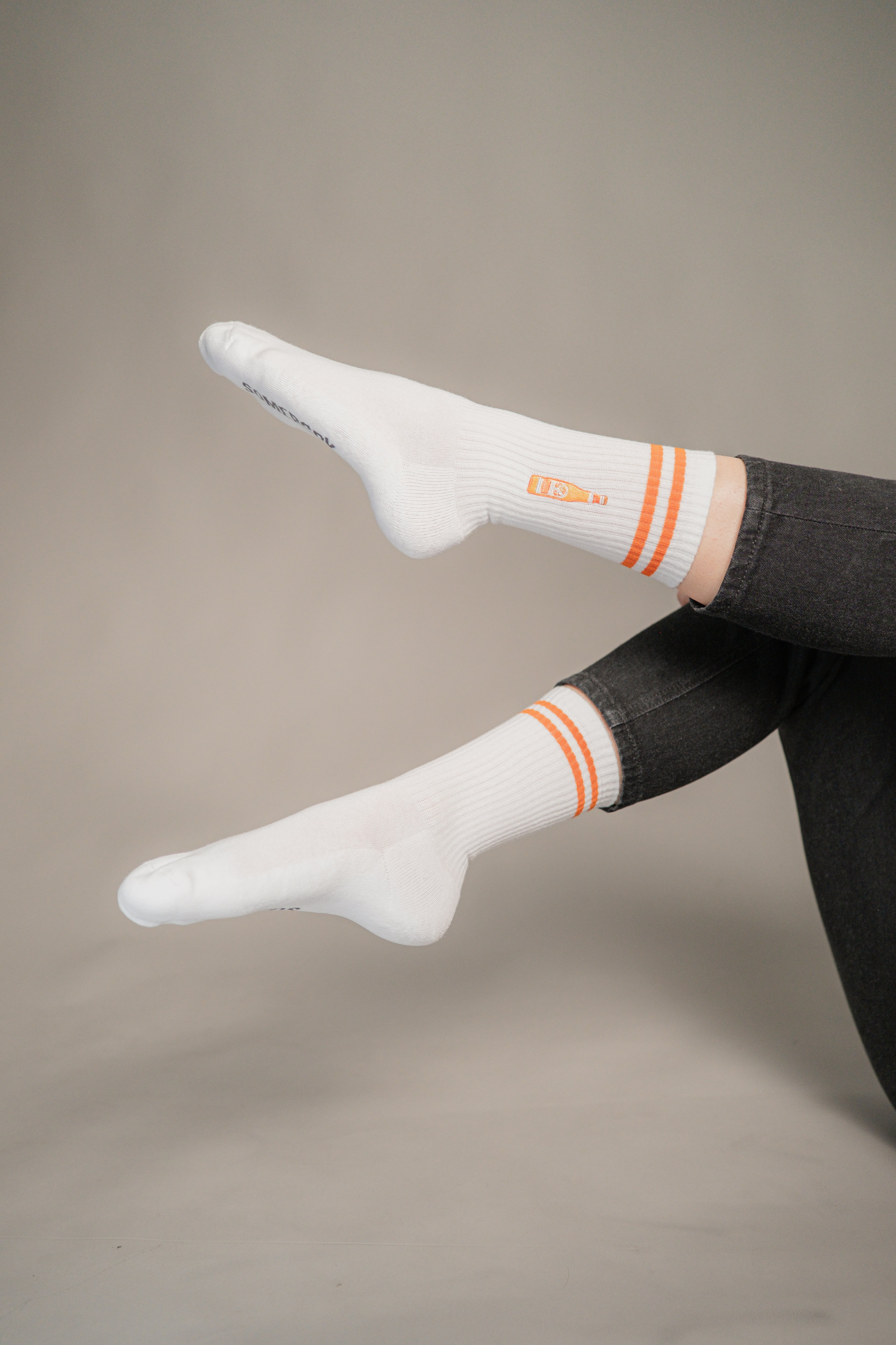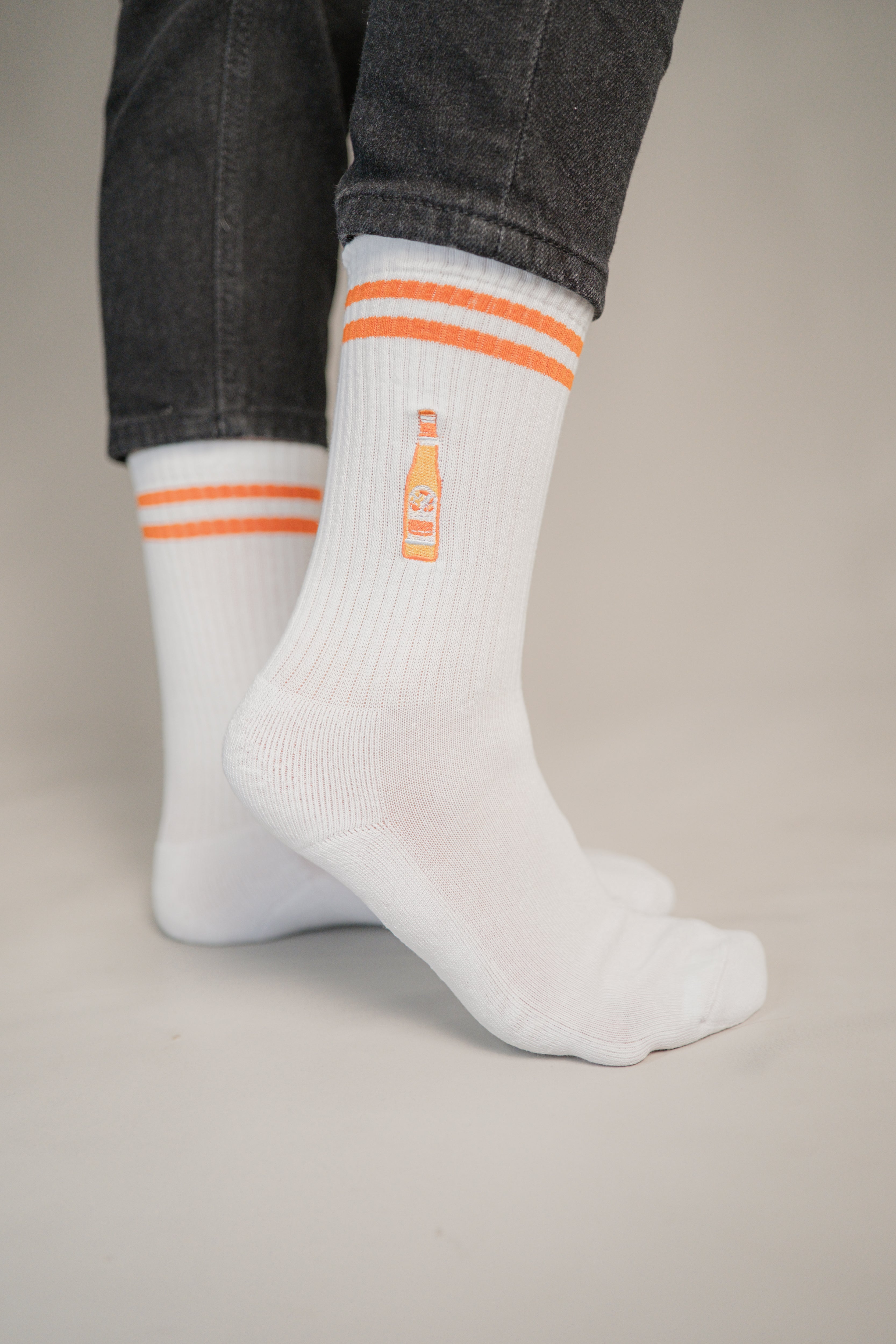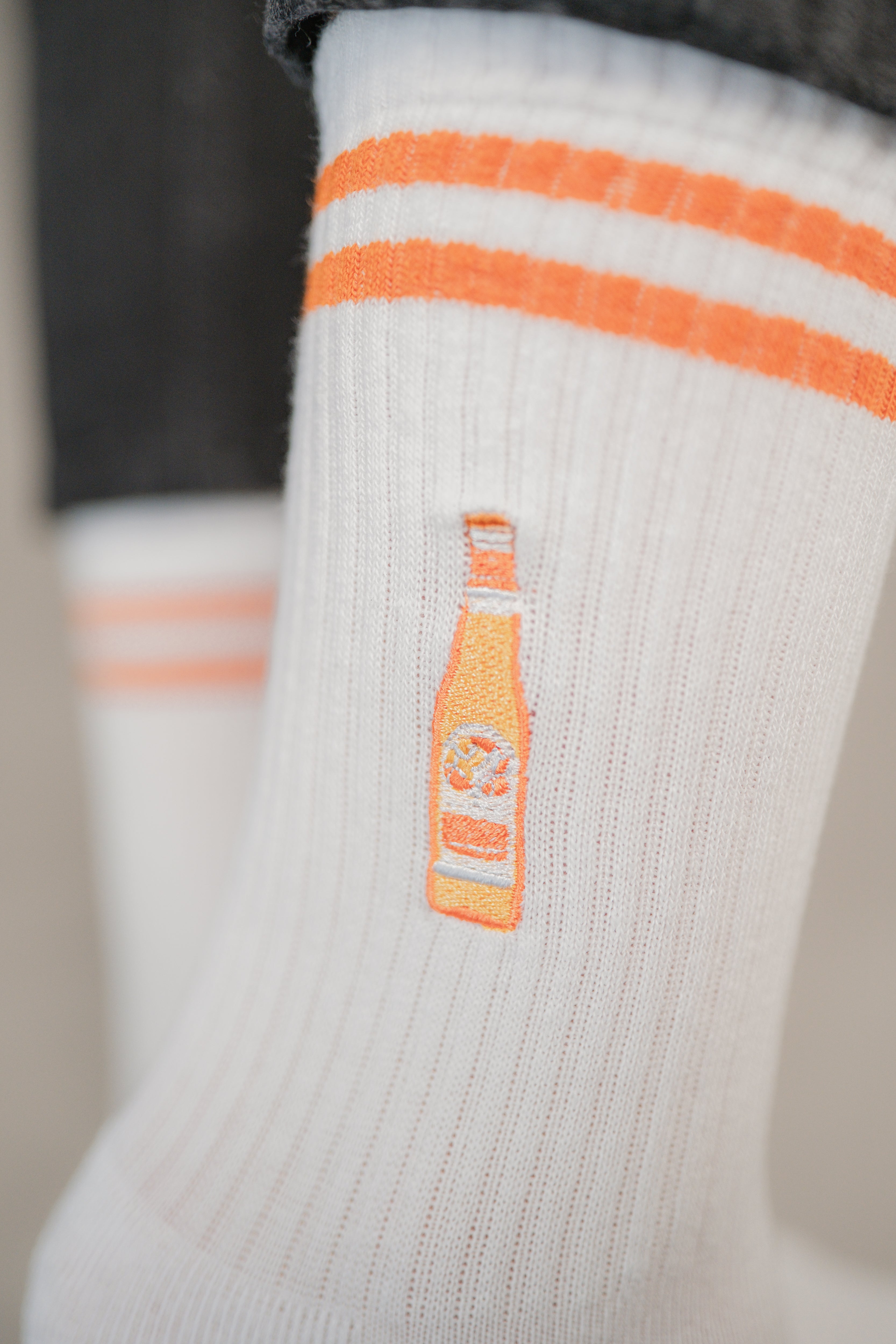 Super hochwertige Bio Baumwoll Crew Socken mit gesticktem offiziellem Somersby® Orange Spritz Design
