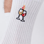 Super hoge kwaliteit biologische katoenen crew sokken met geborduurd wijnduet ontwerp