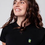 Besticktes Bio Baumwoll Frauen T-Shirt mit extrem angenehmen Stoff (155gsm) und gesticktem Gin Basilicum Smash Ontwerp
