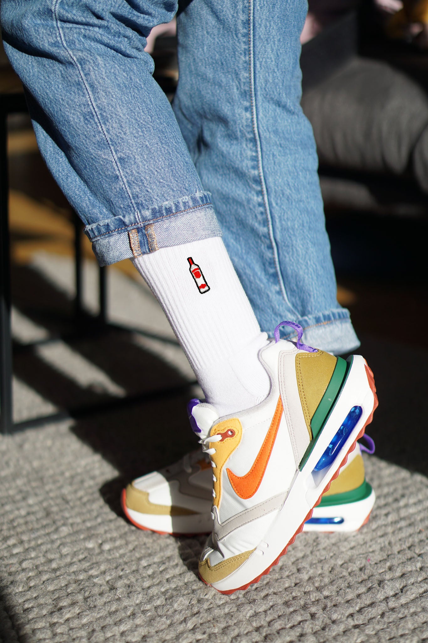 Die Stickerei auf unseren Fashion Drinks Socken bleibt auch nach mehrmaligem Waschen in einwandfreier Form. Wir verwenden präzise Industriemaschinen, die speziell für feine, detaillierte Stickarbeiten entwickelt wurden. So bleibt die Stickerei stabil und die Socken behalten ihre Form. Um die Qualität zu erhalten, empfehlen wir, die Socken bei niedrigen Temperaturen zu waschen und sie auf links zu drehen.
