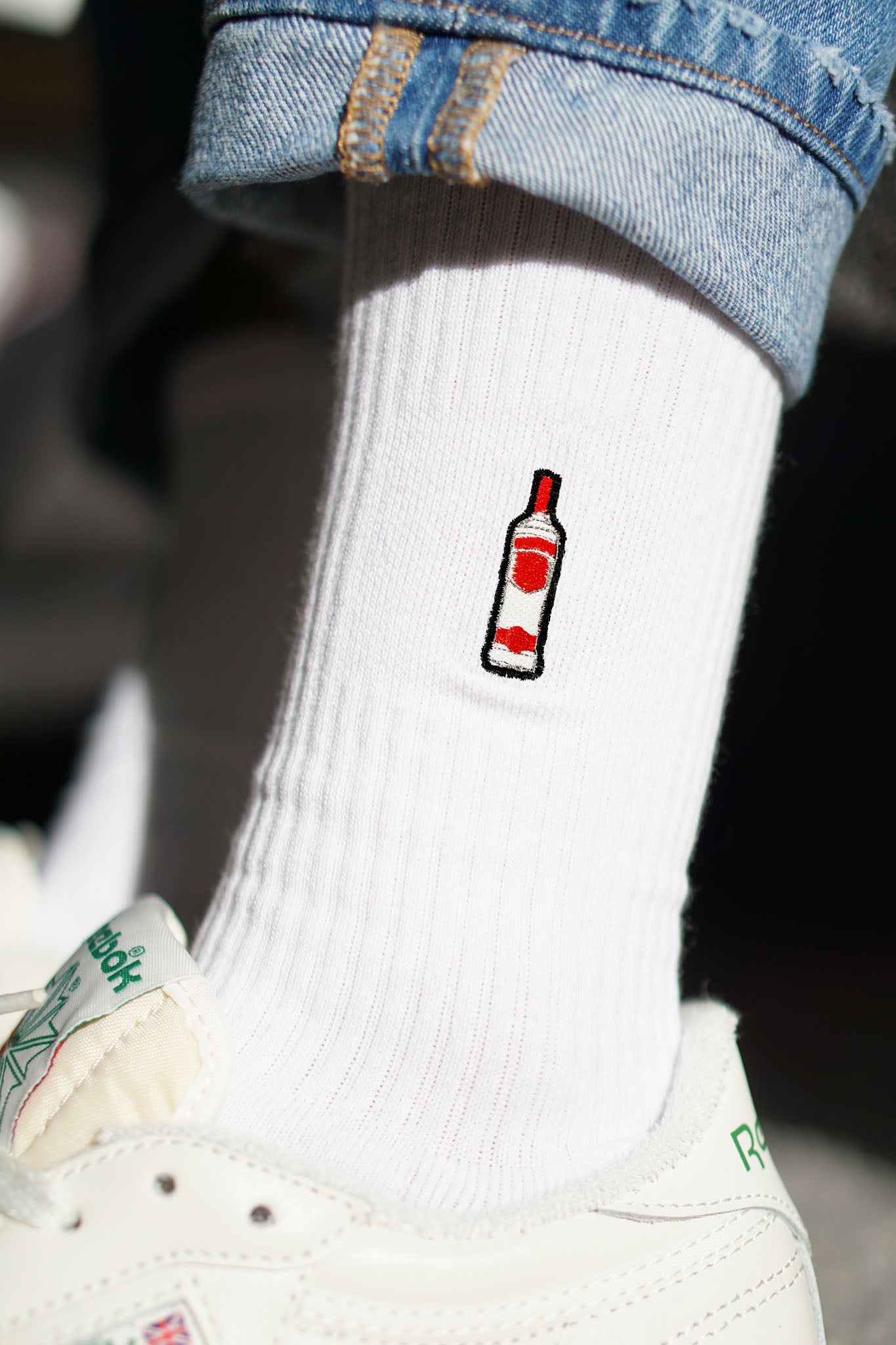 Super hoogwaardige crew sokken van biologisch katoen met geborduurd wodka ontwerp