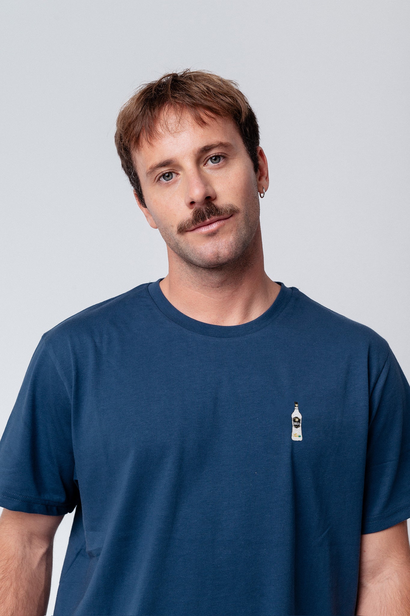 Besticktes Bio Baumwoll Unisex T-Shirt mit schwerem Stoff (190gsm) und der offiziellen gestickten Mangaroca Batida de Côco® Flasche