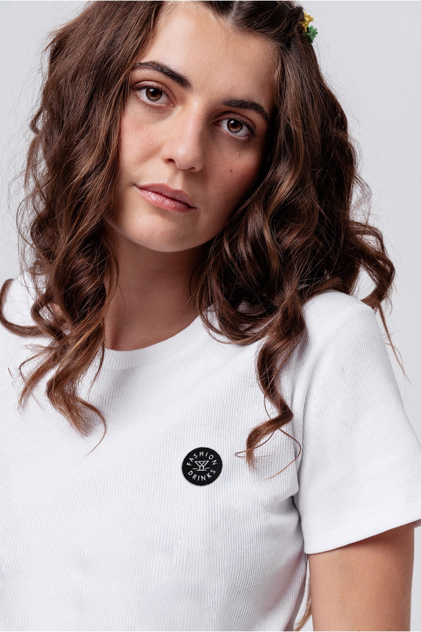 Super hochwertiges Bio Baumwoll Cropped T-Shirt mit gesticktem Fashion Drinks Design in drei verschiedenen Schnitt-Varianten: Ripped, Regular & Oversized