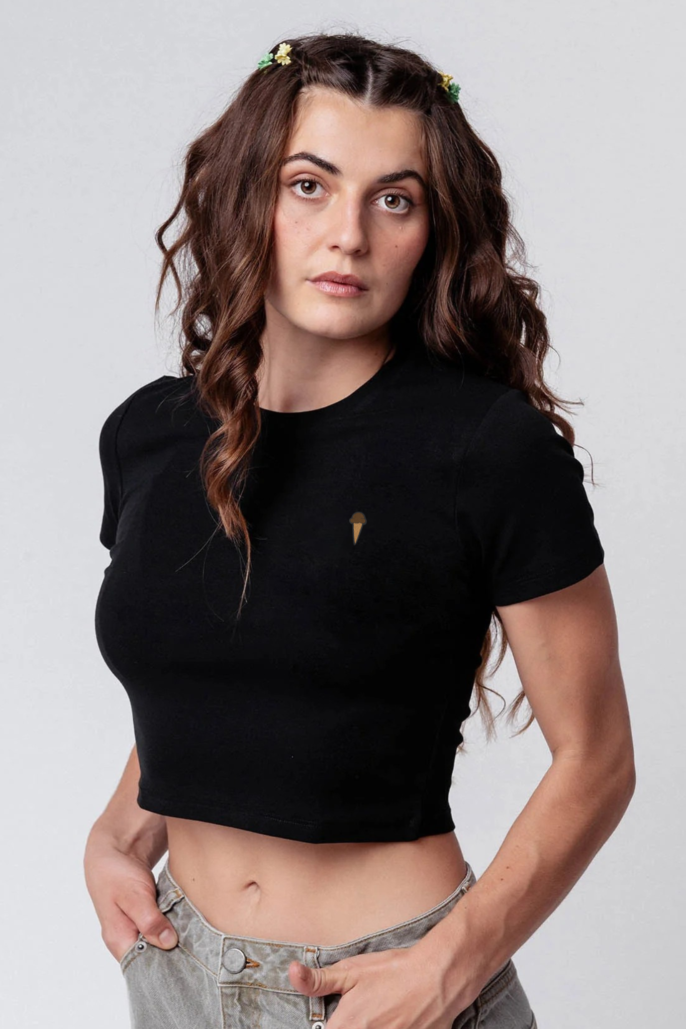 Eis | Besticktes Bio Baumwoll Cropped T-Shirt