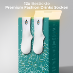 • 12 Paar exklusive Fashion Drinks Premium-Socken, hochwertig bestickt und in einzigartigen Designs – ein stylisches Must-have für die Feiertage und darüber hinaus.