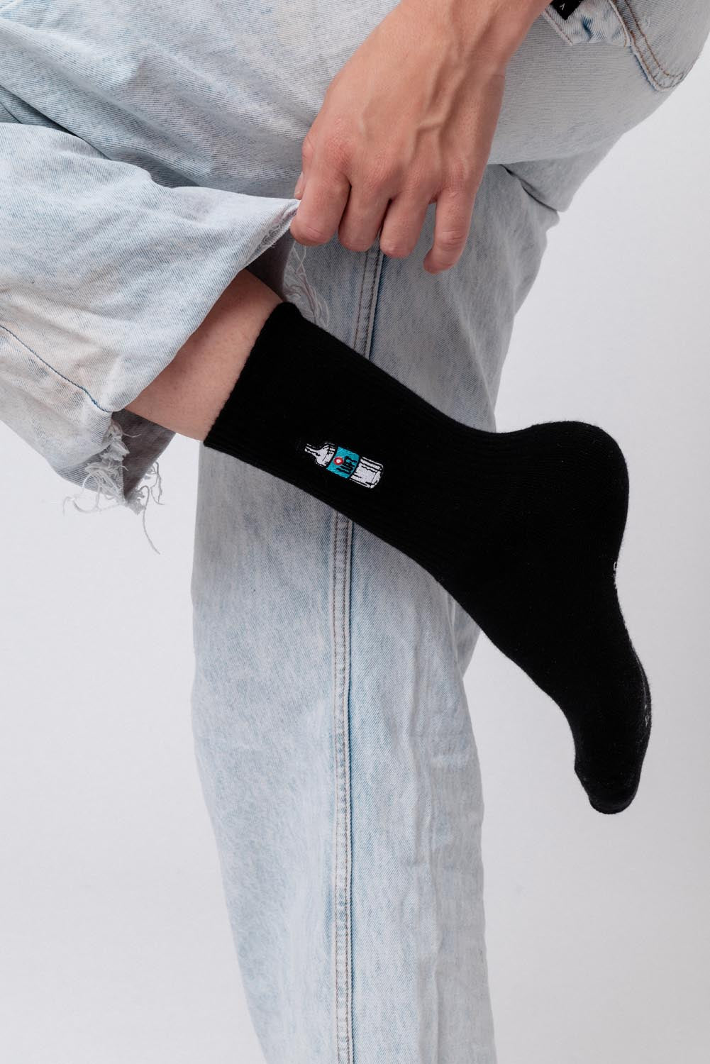 • Geborduurd op beide sokken (buiten elk)