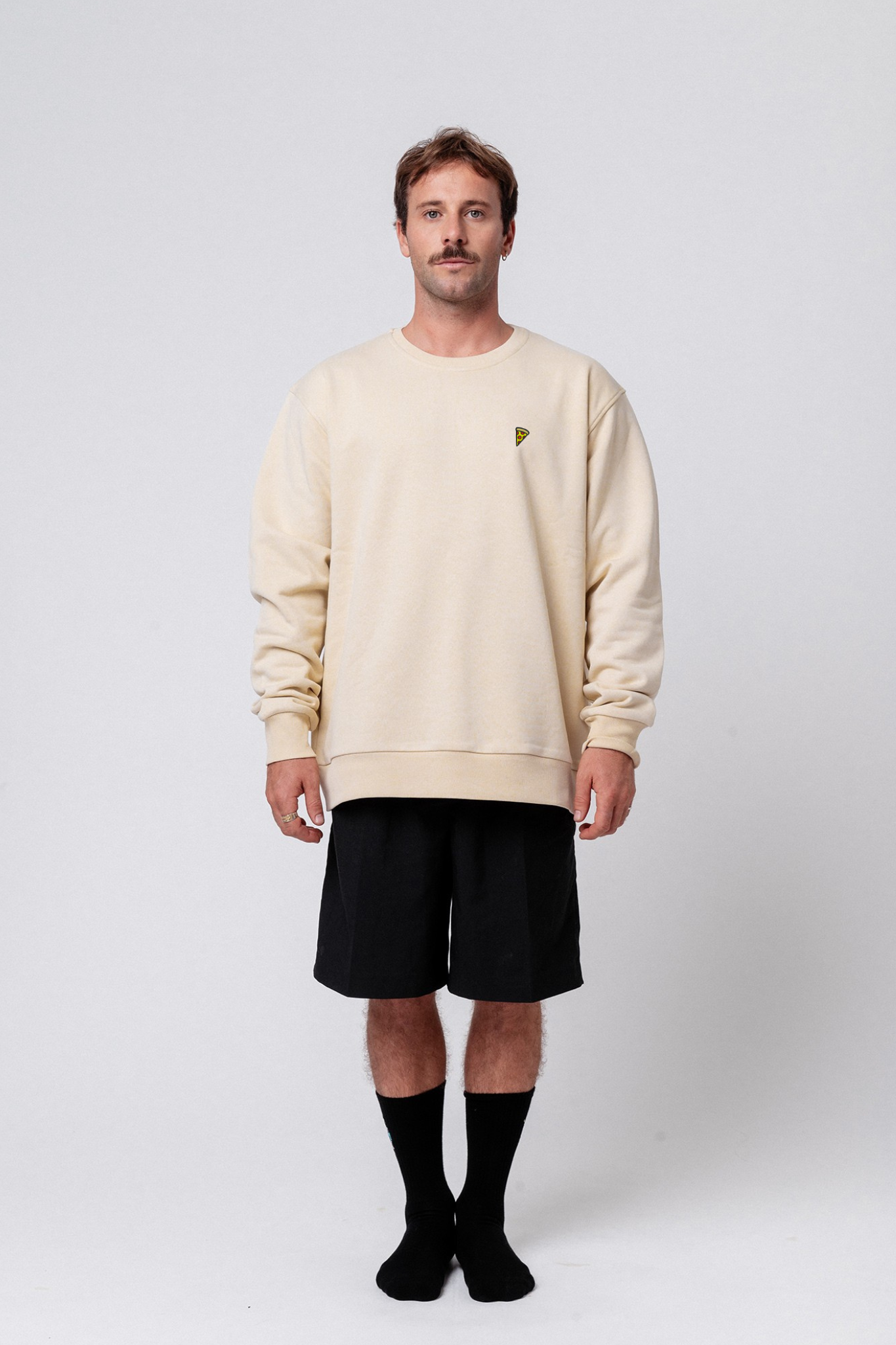 Bestickter Bio Baumwoll Unisex Pullover mit schwerem Stoff (320gsm) und gesticktem Pizza Design