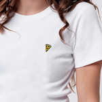 Super hochwertiges Bio Baumwoll Cropped T-Shirt mit gesticktem Pizza Design in drei verschiedenen Schnitt-Varianten: Ripped, Regular & Oversized