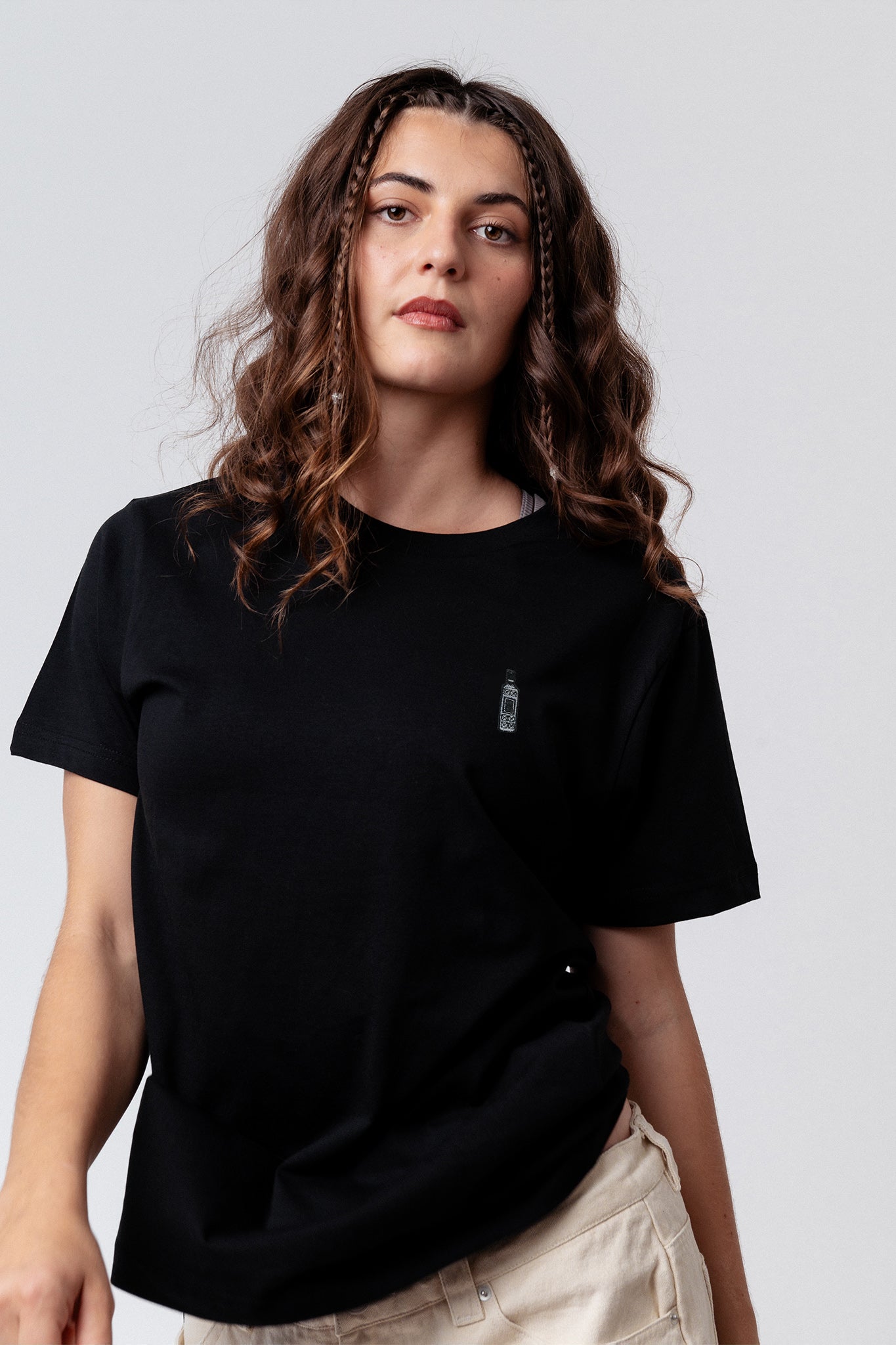 Besticktes Bio Baumwoll Unisex T-Shirt mit schwerem Stoff (190gsm) und der offiziellen gestickten Three Sixty Flasche